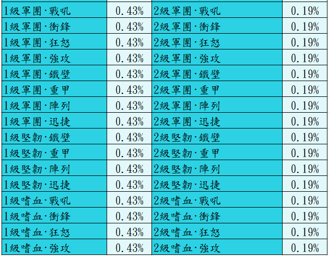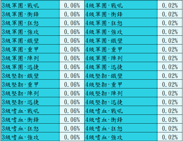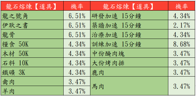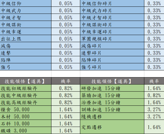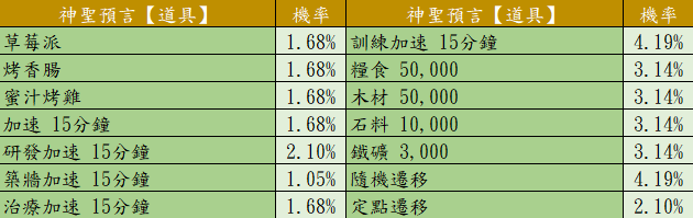 下方為傳奇城堡活動【抽取機率】