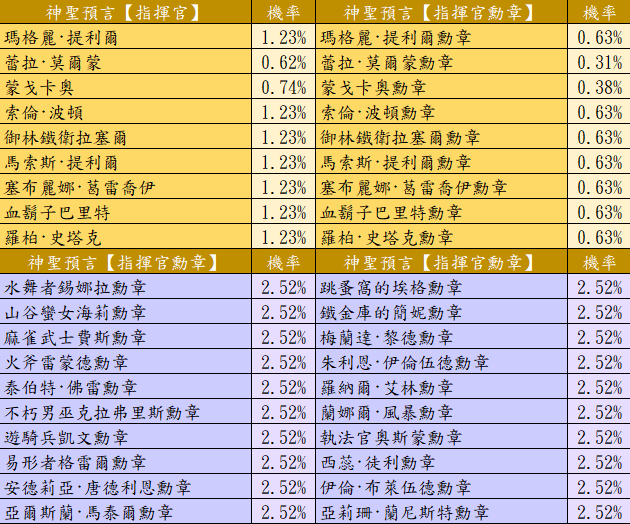 可獲得【金色品質指揮官/勳章】與【紫色品質指揮官勳章】與【道具】