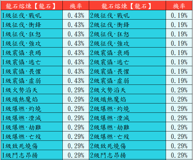 下方為大占星台【抽取機率】共四個卡池,分別為龍石熔煉、占星預言、神聖預言、技能領悟