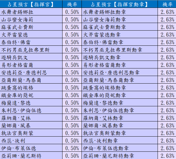 「GOT」-占星台機率&轉盤活動機率