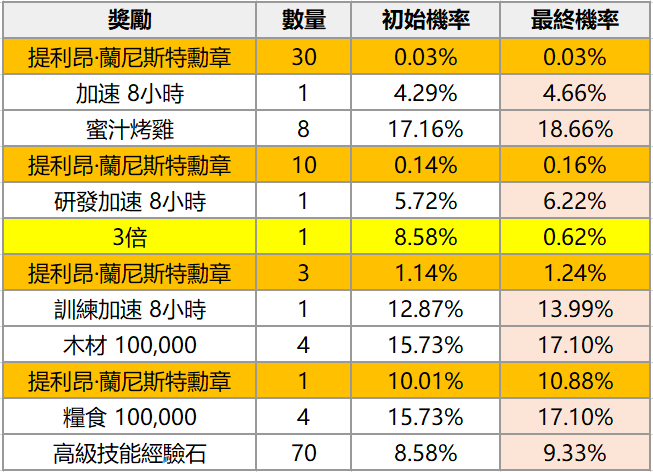 備註:當抽到【兌換券】時,該項機率將平分給其他抽取品項