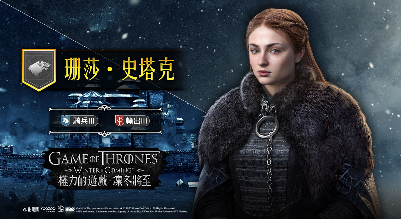【至高統帥】與珊莎·史塔克共同上陣,出征時武力加成24%